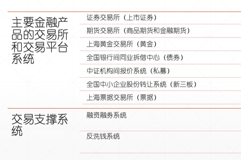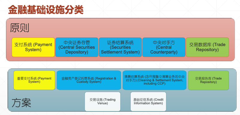 - 金融基础设施。这是我们本门课的重点内容,围绕此六大类(原则规定的五大类+TV)展开。