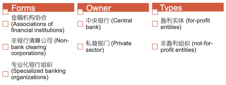 - 功能基础性:指FMI作为整个金融产品和服务的一个核心,为整个金融系统提供了一个基础框架,同时它也是一个服务的平台。其有三种不同类型的参与者,他们有不同的需求。