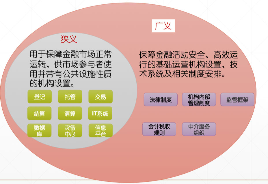 如果从狭义和广义角度而言,金融基础设施可分类如下: