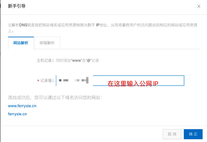 点击新手引导,然后输入公网IP(前面说过的,在服务器控制台IP地址那里可以看到公网IP和私网IP)