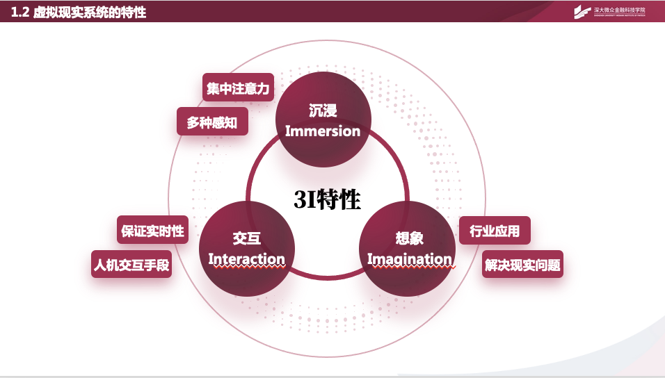 可以用三个“I”来概括,沉浸(immersion)、交互(interaction)和 想象(imagination)