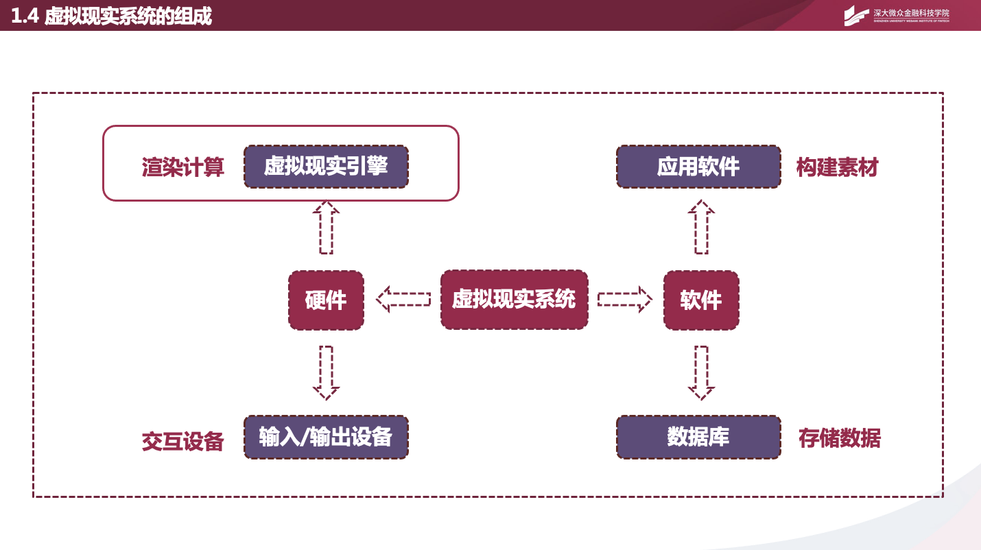 硬件进一步分为虚拟现实引擎和输入/输出设备;
