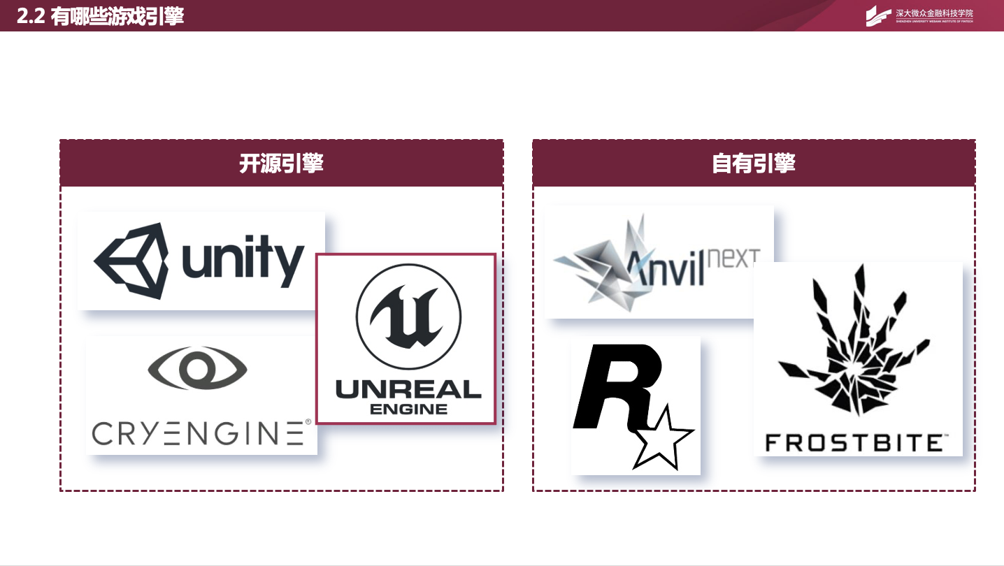 目前的游戏引擎主要分为开源引擎和自有引擎,开源引擎中应用最为广泛的就是虚幻引擎(Unreal)与Unity引擎。