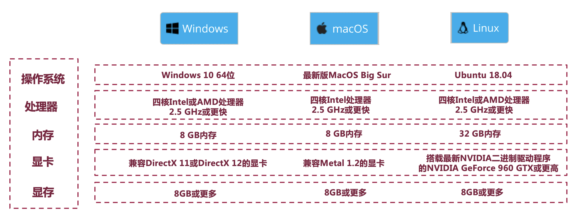 前面已经提过,UE5支持三大主流系统,这里是一些推荐的配置,一般而言,配置越高,运行也相应会更流畅。