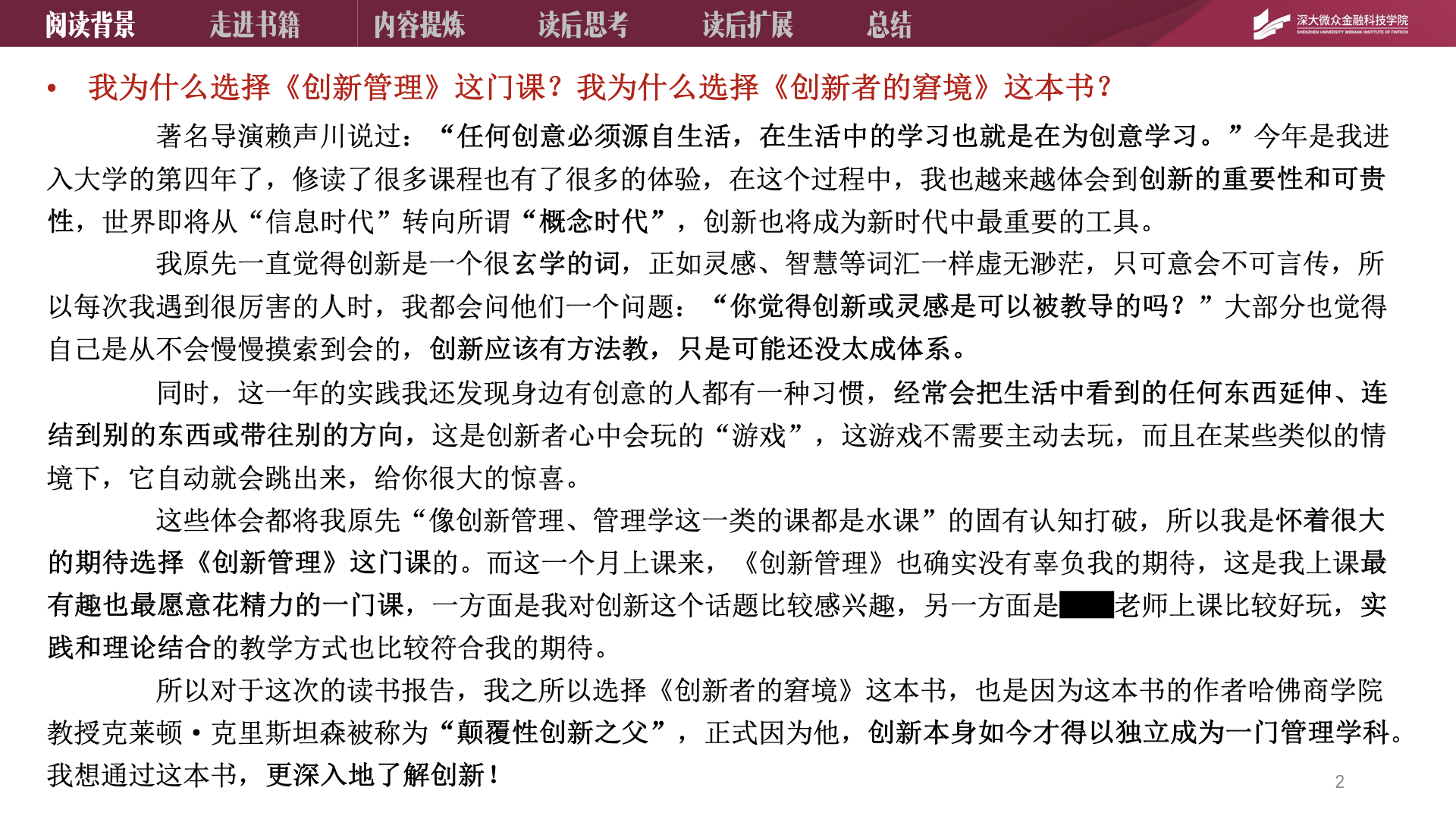 关于读书,试一试看完一本书,写一个PPT,给其他人讲一遍,通过这种费曼学习法,输出一个完整的作品,真的是一个深度思考与成长的学习方式。